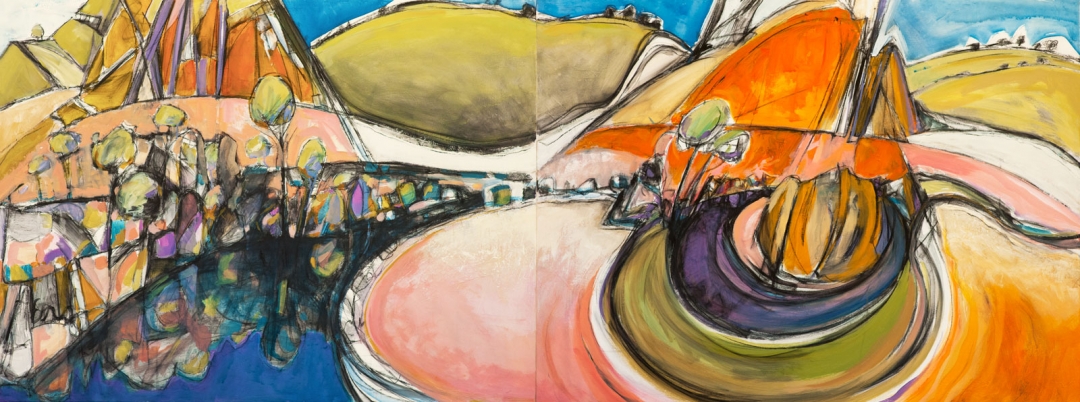 Probably one of the most interesting and difficult waterholes to paint in Arkaroola, we have nicknamed it “Noodles” as no one can pronounce its real name Nooloodoolnoola. Arkaroo is the dream time serpent who inhabits this area of the Flinders Ranges and the story goes, the serpent left the Flinders and travelled out and went to Lake Frome and drank the Lake dry, which is why it is a dry lake most of the time. When Arkaroo returned to the desert ranges, the local people dropped this huge boulder into the riverbed at the meeting point of two rivers so that the serpent would never be able to escape again! That ancient place is Nooloodoolnoola waterhole!